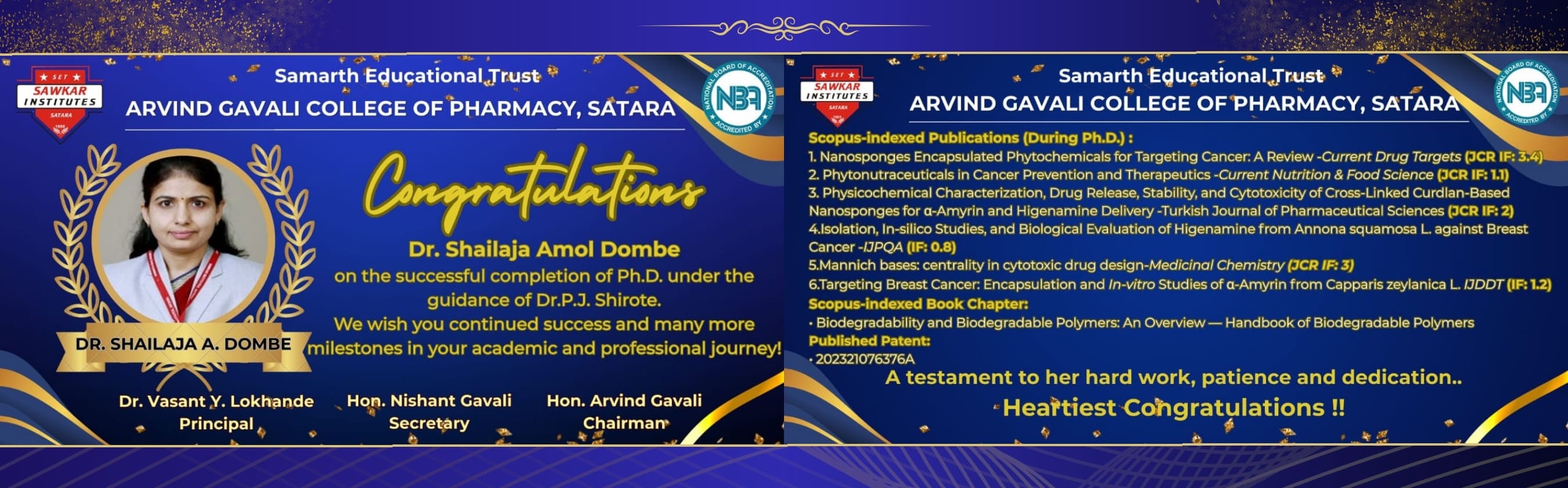 'Samarth Educational Trust' (SET) has been established by renowned educationalist & social worker, Hon. Arvind Gavali in Satara in 1983. The SET was established with single minded goal to impart value-based, student-centric education to the masses. Trust has knitted together a network of educational activities encompassing Homeopathic Medical College, Pharmacy College & Engineering & Polytechnic College where more than 3000 future professionals are educated & trained. Diploma (D. Pharm) and degree (B. Pharm) courses in Pharmacy were started in 2003 & 2007 respectively & Post-graduate (M.Pharm) department was started in 2011 with an objective to provide high quality professional education at affordable cost to ordinary element of the society.